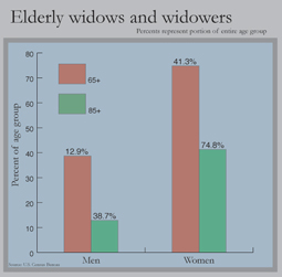 Percentage of elderly population that is widowed, by age and sex.